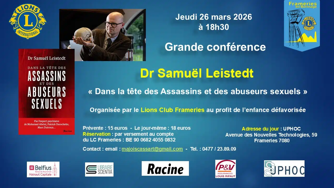 En collaboration avec le LIONS CLUB FRAMERIES, nous vous invitons à assister à la conférence donnée par le Dr Samuël Leistedt